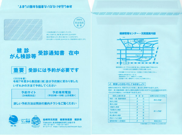 令和7年4月下旬〜5月上旬に受診案内をお送りしていますので確認しましょう。