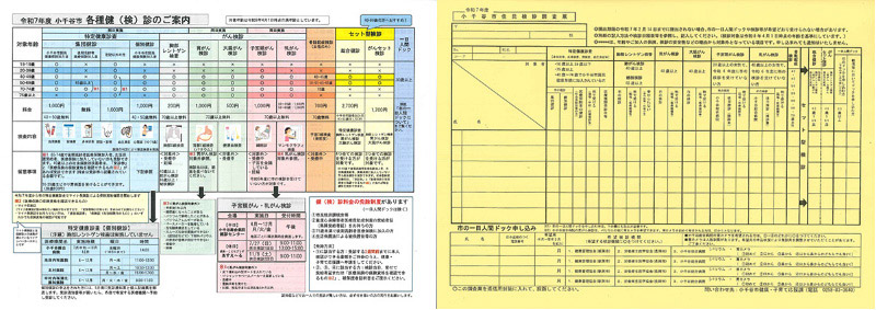 市町村により健診方法・会場などが異なりますので、詳細は市町村へお問い合わせください。